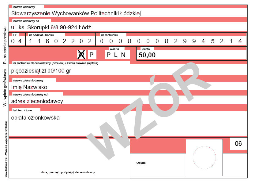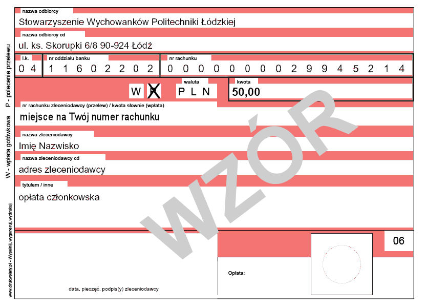 Wysokość składki: - 30 zł - emeryci - 50 zł - pozostali Składkę członkowską można wnosić: